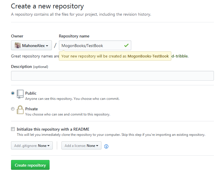 最好名字和GitBook上面创建的书籍名字保持一致,然后点击Create respository