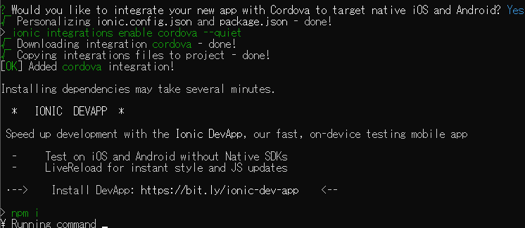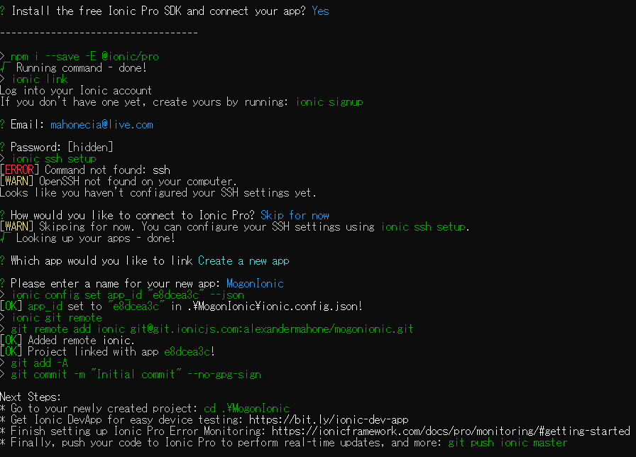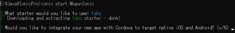 1 | E:\Java\IonicPro>ionic start MogonIonic |