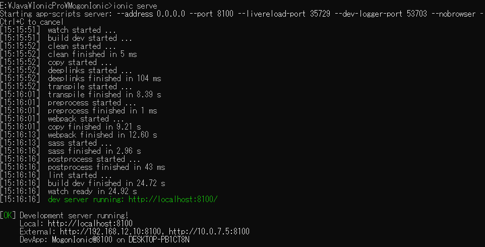 1 | E:\Java\IonicPro\MogonIonic>ionic serve |