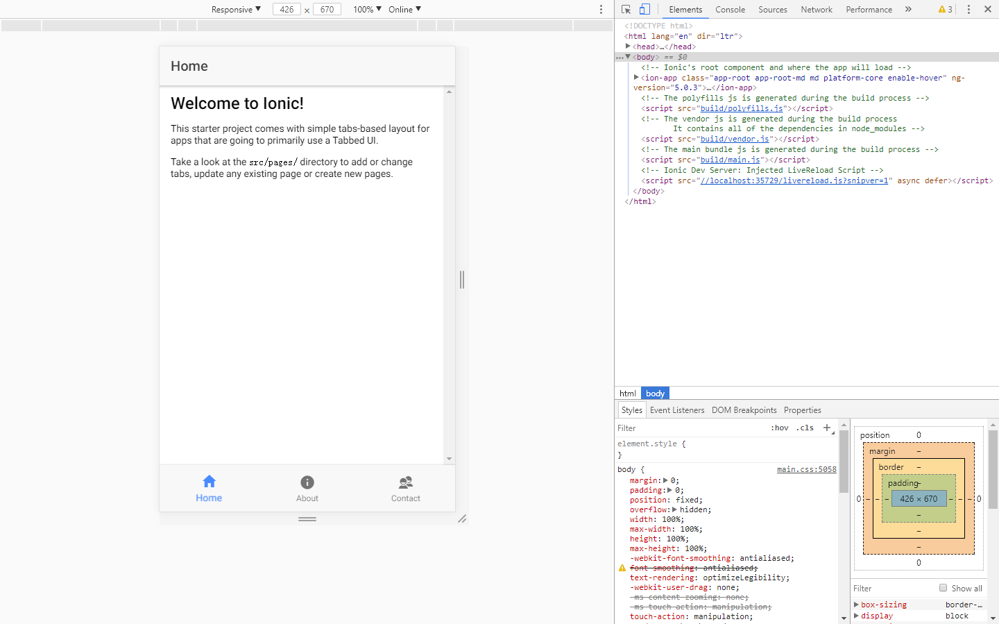 运行如下命令,启动Ionic项目