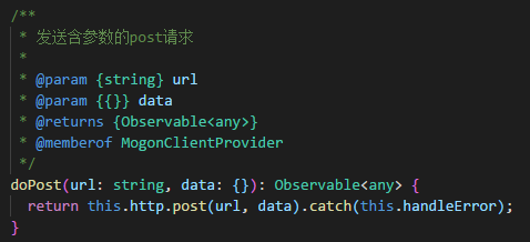 这里我们定义了一个post的请求方式,并在login方法里面去调用这个方法,返回一个Observable类型