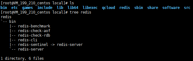 出现上图所示,安装成功,/usr/local/redis的目录结构如下所示