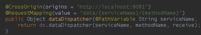This @CrossOrigin annotation enables cross-origin requests only for this specific method. By default, its allows all origins, all headers, the HTTP methods specified in the @RequestMapping annotation and a maxAge of 30 minutes is used. You can customize this behavior by specifying the value of one of the annotation attributes: origins, methods, allowedHeaders, exposedHeaders, allowCredentials or maxAge. In this xample, we only allow http://localhost:8081 to send cross-origin requests.